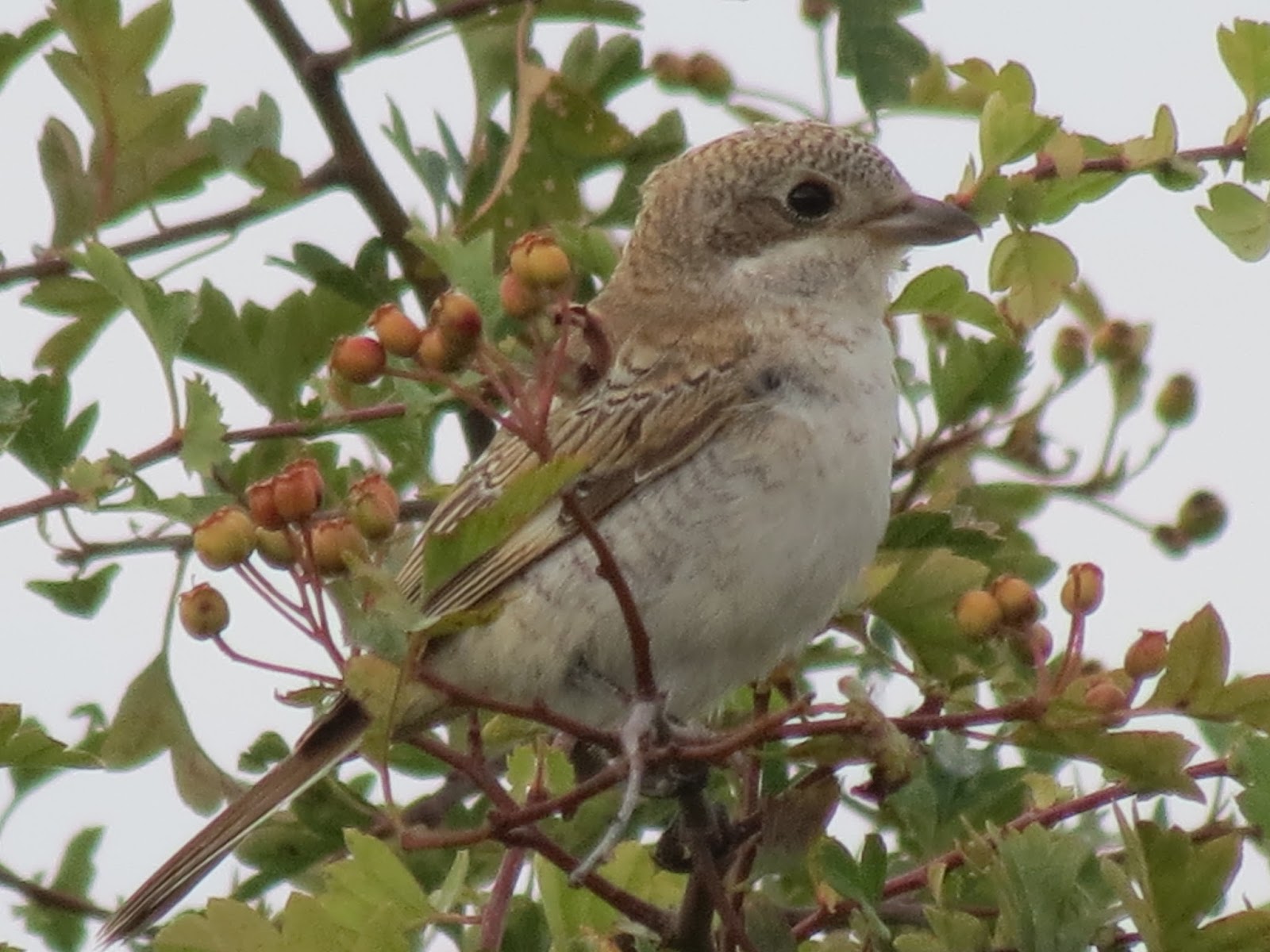A juvenile WOODCHAT SHRIKE was discovered on Harrington Airfield this lunchtime 2 miles NNE of Langport (Northants), constituting only the third claim for the county and the first in over 130 years (previous records involved an adult at Gore Piece, Duddington, in 'spring' 1869 and a female said to have been picked up dead at Burghley Top, near Stamford, on the exceptional date of 9th January 1883. I made my way up there as soon as I got the call - the bird showing down to 45 yards from 1500-1740 hours. Here is a selection of the 322 shots I took..........